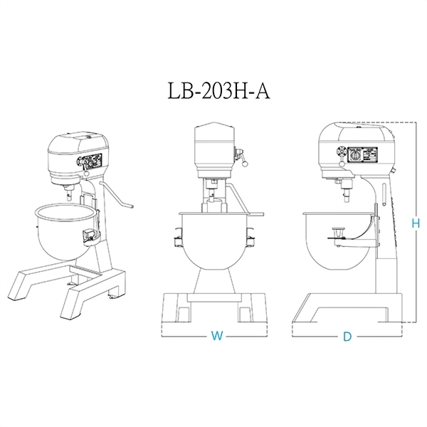 | LB-203H-A | 3/4HP / 0.563kw | 20L / 3Kg | 60 cycle motor | NO | 58x56x106 | 64×70×116 | 92 | ||