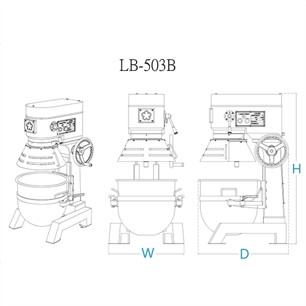 | LB-503A | 2HP / 1.5kw | 50L / 12Kg | 60 cycle motor | NO | 67×56×112 | 76×69×130 | 176 | ||